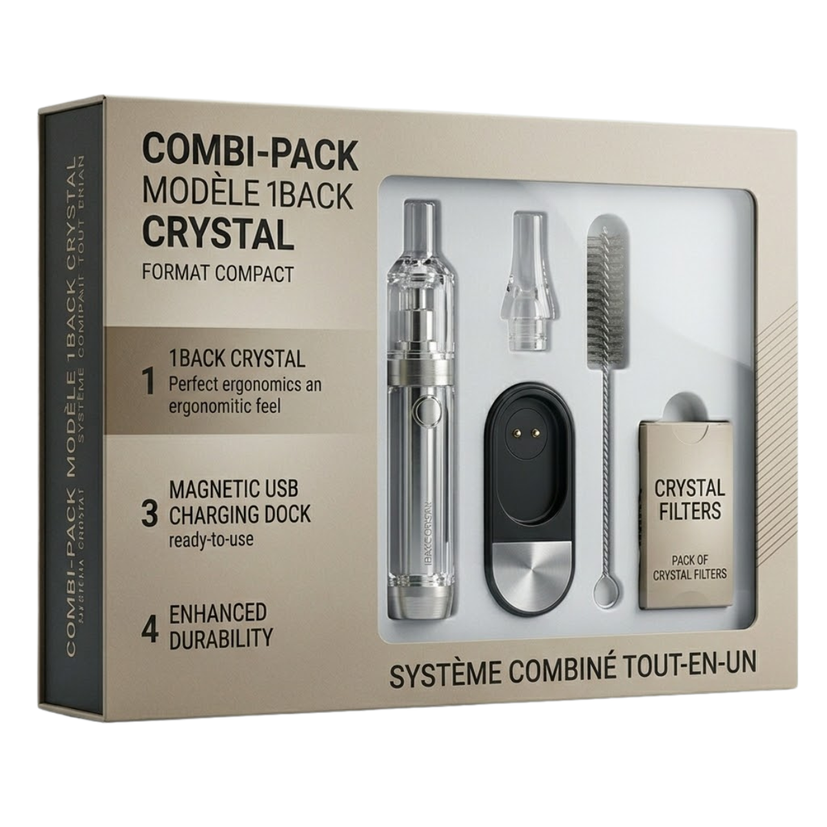 Le Combi-Pack Modèle 1Back Crystal est l’accessoire indispensable pour optimiser votre expérience quotidienne. Ce pack combiné a été pensé pour offrir une ergonomie parfaite et une durabilité accrue, répondant aux besoins des amateurs de la gamme Crystal souhaitant un équipement complet et prêt à l’emploi.